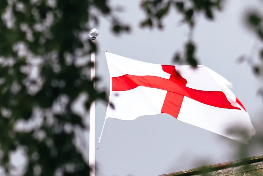 Le nom du drapeau « Saint George » vient du saint patron de l’Angleterre, un homme souvent représenté avec une croix rouge sur un bouclier ou un manteau.